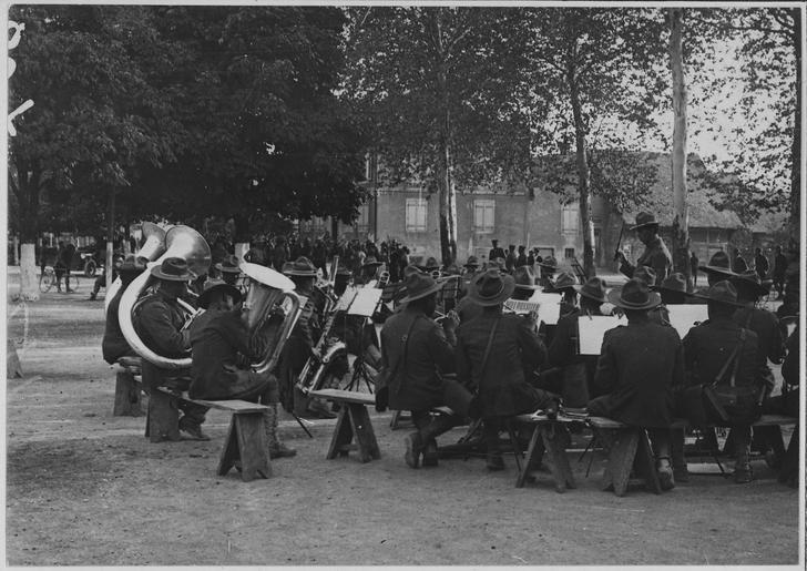 | Keywords: American (African American) troops giving a military concert in an Alsatian village. - NARA - 533503.tif Scope and content General notes 533503 Local identifier 165-WW-127 19 War Department 1789 - 09/18/1947 Still Picture Records Section Special Media Archives Services Division NWCS-S National Archives at College Park 8601 Adelphi Road College Park MD 20740-6001 1917 - ca 1919 Record group Record Group 165 Records of the War Department General and Special Staffs 1860 - 1952 Record group ARC 494 American Unofficial Collection of World War I Photographs compiled 1917 - 1918 Series ARC 533461 File unit File unit ARC Variant control numbers NAIL Control Number NWDNS-165-WW-127 19 yes Other versions <gallery> File American African American troops giving a military concert in an Alsatian village - NARA - 533503 tif tif File African_American_troops_giving_a_military_concert_in_an_Alsatian_village _-_NARA_-_533503 jpg jpg Cropped color corrections </gallery> NARA-cooperation PD-USGov World War I forces of the United States in France African American soldiers African American history of the 1910s NARA TIF images with categorized JPGs Alsace in World War I Military life in World War I Military bands of the United States Army Military bands in World War I |