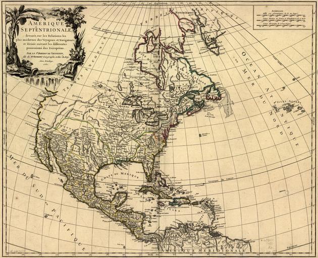 | Keywords: Amérique Septentrionale (Robert de Vaugondy 1750).jpg of the photograph quoted directly from the photograph's Flickr page <br/> Amérique Septentrionale Robert de Vaugondy 1750 <br>Another important source of cartographic supposition concerning the northwest of the continent were the sketches and maps of the De l u2019Isle family Robert De Vaugondy almost directly copied his detail fro this region from this source Although most of Manitoba is included in the area labeled u201CTerres Inconnues u201D there are other features associated with this Province shown on the map The most important is the simplified R Bourbon Nelson and Lac des Assinipoils Lake Winnipeg R St Therese Hayes and R de Munck Churchill are here also and all stem directly from the De l u2019Isle versions of earlier map-makers Lac des Assinipouls is located too far to the southeast of its proper position and is unrelated to the Border Lakes network which stretches far to the west from Lake Superior These features are a grossly simplified version of La Verendrye information and the way in which all these details are inserted shows that De Vaugondy was more interested in filling space than correlating the geographic data even then available to a u201CGeographe ordin u2019 du Roy u201D <br> Warkentin and Ruggles Historical Atlas of Manitoba map 44 p 114 <br>-------------------<br>Amérique septentrionale dressée sur les relations les plus modernes des voyageurs et navigateurs et divisée suivant les differentes possessions des européens Par le Sr Robert de Vaugondy 1750 Drawn by Robert de Vaugondy Printed in black ink with coloured portions In Robert de Vaugondy Atlas Universel Paris 1757 Map No 97 <br><br>Image Source Library of Congress American Memory Project originally posted to Flickr as http //www flickr com/photos/11496488 N07/2179435712/ Amérique Septentrionale Robert de Vaugondy 1750 Uploaded using F2ComButton 1750 http //www flickr com/people/11496488 N07 PD-old-100 Manitoba Historical Maps http //flickr com/photos/11496488 N07/2179435712 06 19 30 December 2009 UTC cc-by-2 0 Old maps of North America 1750 in Canada United States in the 1750s |