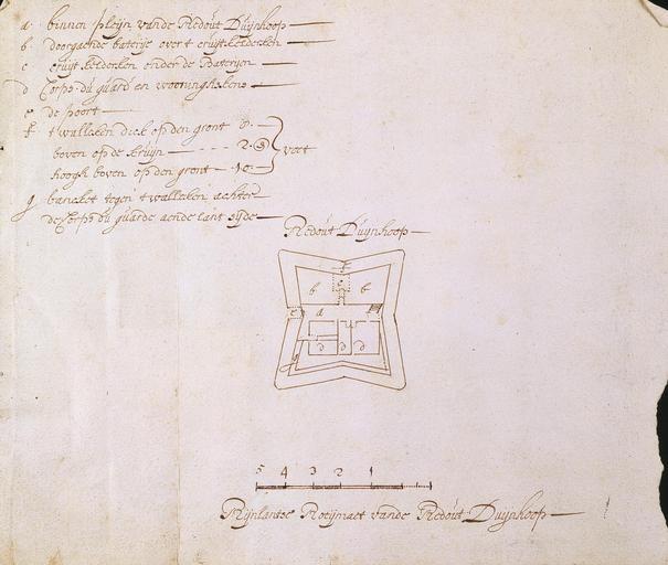 | Keywords: AMH-2544-NA Ground plan of the Duynhoop redoubt.jpg  Artwork nl Plan van redout Duynhoop nl Titel catalogus Leupe NA Plan van de redout Duynhoop Notities verso 654 van de Kaap II deel n 204; 498e Legenda a-g en According to the catalogue Leupe NA the original title reads Plan van de redout Duynhoop Notes on reverse 654 van de Kaap II deel n 204; 498e Key a-g Atlas of Mutual Heritage na http //www atlasofmutualheritage nl/en/object/ id 2544 Source at the Atlas of Mutual Heritage - http //www gahetna nl/collectie/archief/inventaris/index/eadid/4 VEL/inventarisnr/817/level/file Source at the Nationaal Archief en Subjects chart / map / plan fortification key nl Onderwerpen plattegrond / kaart vesting legenda Inscription Redout Duijnhoop nl circa 1654 nl Anoniem / Anonymous en Anoniem / Anonymous Institution Nationaal Archief nl pen op papier en pen on paper Size mm 210 240 accession number NL-HaNA_4 VEL_817 old number VEL0817 PD-Art-100 Old maps of the Dutch East India Company - Africa 1654 maps Table Bay |