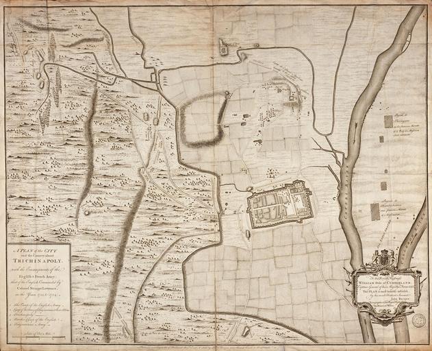 | Keywords: AMH-5391-NA Map of Trichinapoly and environs.jpg Artwork nl Kaart van Trichinapoly en omgeving nl Titel catalogus Leupe NA A Plan of the City and the Country about Trichinapoly with the encampments of the English and French Army; that of the English commanded by colonel Stringer Lawrence in the years 1753 and 1754 Notities verso No 8 Stad en Environs van Trichinapolij Register 1 Deel 1 Folio Portefeuille 1 geschreven op een blauw etiket / 588 met vette cijfers gestempeld op een etiketje en Title in the Leupe catalogue NA A Plan of the City and the Country about Trichinapoly with the encampments of the English and French Army; that of the English commanded by colonel Stringer Lawrence in the years 1753 and 1754 Notes on reverse No 8 Stad en Environs van Trichinapolij Register 1 Deel 1 Folio Portefeuille 1 written on a blue label / 588 stamped on a small label in bold Atlas of Mutual Heritage na http //www atlasofmutualheritage nl/en/object/ id 5391 Source at the Atlas of Mutual Heritage - http //www gahetna nl/collectie/archief/inventaris/index/eadid/4 VEL/inventarisnr/1088/level/file Source at the Nationaal Archief en Subjects chart / map / plan encampment / military base banderole / cartouche / ornamentation key nl Onderwerpen plattegrond / kaart kampement / legerplaats banderol / cartouche / versiering legenda en Post this image is related to a WIC trading post called http //www atlasofmutualheritage nl/en/post/ id 902 Tiruchchirappalli Inscription A Plan of the City and the Country about Trichinapoly / To his Royal Highness William Duke of Cumberland Captain General of his Majestic Forces / This plan is most humbly inscribed by his most obedient servant John Rocque chorographer of his Royal Highness the Prince of Wales author sold by John Roque near Round Court in the Strand nl 1757 Creator John Roque nl John Roque landmeter / kaartenmaker en John Roque land surveyor / mapmaker Institution Nationaal Archief nl koperdruk op papier en copperplate printing on paper Size cm 61 75 5 accession number NL-HaNA_4 VEL_1088 old number VEL1088 PD-Art-100 1757 |