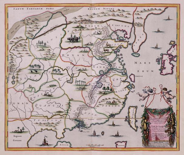 Keywords: AMH-5649-KB Map depicting the journey by Joan Nieuhoff from Canton to Peking.jpg Artwork nl Kaart van de reis van Joan Nieuhoff van Canton naar Peking nl Kaart van de reis van Joan Nieuhoff van Canton naar Peking uit de Atlas van der Hagen Koninklijke Bibliotheek Den Haag Deel 4 Tussen 1655 en 1658 bezocht een handelsdelegatie van de Verenigde Oostindische Compagnie Peking met het doel om handelsrelaties aan te knopen met China Een van de deelnemers aan deze reis was de Amsterdamse wereldreiziger Johan Nieuhoff Na terugkomst publiceerde zijn belevenissen in een rijk geïllustreerd reisverslag Bij dat boek behoorde ook deze kaart waarop de reisroute van het gezantschap door China is afgebeeld en Map of the journey of Joan Nieuhoff from Canton to Peking taken from the Atlas van der Hagen Koninklijke Bibliotheek The Hague Part 4 A trade delegation from the Dutch East India Company visited Peking between 1655 and 1658 with the aim of establishing trade relations with China Among the delegation was the Amsterdam-based globetrotter Johan Nieuhoff On his return he published his experiences in the form of a richly illustrated travel journal This map depicting the route taken by the trade delegation on its travels through China was also included in the journal Atlas of Mutual Heritage kb http //www atlasofmutualheritage nl/en/object/ id 5649 Source at the Atlas of Mutual Heritage en Subjects ship / vessel chart / map / plan banderole / cartouche / ornamentation fauna Person nl Onderwerpen schip / vaartuig plattegrond / kaart banderol / cartouche / versiering fauna Persoon en Post this image is related to a VOC trading post called http //www atlasofmutualheritage nl/en/post/ id 372 Kanton/Guangzhou Inscription REYS-KAERTE vande Ambassade der Nederlantse Oost Indise Compagnie door China aen den Grooten Tartersen CHAM nl 1665 Creator Jacob van Meurs nl Jacob van Meurs uitgever en Jacob van Meurs publisher Institution Koninklijke Bibliotheek nl koperdruk op papier en copperplate printing on paper Size cm 44 52 accession number 1049B13_053 PD-Art-100 Maps of the Dutch East India Company - China 1665 |