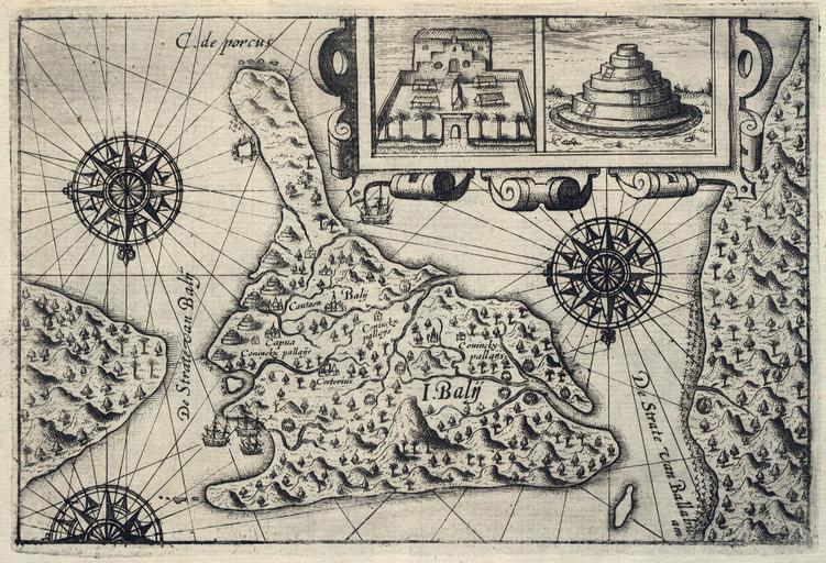 | Keywords: AMH-6657-KB Map of the island of Bali.jpg Artwork nl Kaart van het eiland Bali nl Kaart van het eiland Bali Van de gebouwen op de twee inzetjes is het linker gebouw mogelijk het paleis van de koning het rechter gebouw is een stupa een boeddhistisch bouwwerk Het linker eiland is Lombok het rechter Java I Balij De Strate van Ballabuam C de porcus De Strate van Balij en Map of the island of Bali Of the buildings depicted in the two insets the left might be the king's palace while the building on theright is a stupa a Buddhist construction The island on the left is Lombok that on the right is Java l Balij -De Strate van Ballabuam C de porcus De Strate van Balij Atlas of Mutual Heritage kb http //www atlasofmutualheritage nl/en/object/ id 6657 Source at the Atlas of Mutual Heritage en Subjects fence / kraal compass / dial ship / vessel chart / map / plan church / parsonage building banderole / cartouche / ornamentation flora nl Onderwerpen omheining / kraal kompas / windroos schip / vaartuig plattegrond / kaart kerk / pastorie gebouw banderol / cartouche / versiering flora circa 1598 Creator Cornelis Claesz nl Anoniem / Anonymous graveur / etser Cornelis Claesz uitgever en Anoniem / Anonymous engraver / etcher Cornelis Claesz publisher Institution Koninklijke Bibliotheek nl gravure op papier en engraving on paper Size cm 22 15 accession number 1700 C 2 voor p 66 PD-Art-100 Maps of the Dutch East India Company - Indonesia 1598 |
