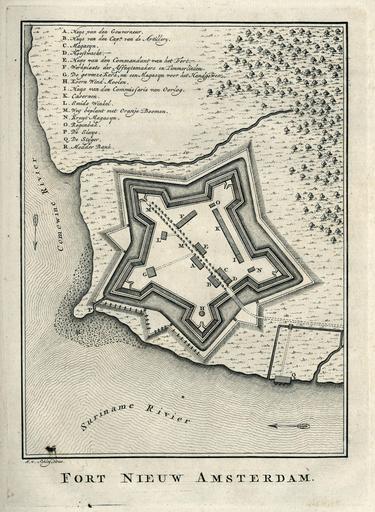 | Keywords: AMH-6914-KB Map of Nieuw Amsterdam fort.jpg Artwork nl Plattegrond van fort Nieuw Amsterdam nl Plattegrond van fort Nieuw Amsterdam Fort Nieuw Amsterdam Legenda A Huys van den Gouverneur / B Huys van de Cap n van de Artillery / C Magasyn / D Hooftwacht / E Huys van den Commandant van het Fort / G De geweeze kerk nu een Magasyn voor het Handgeweer / H Koorn Wind Moolen / I Huys van den Commissaris van Oorlog / K Casernen / L Smids Winkel / M Weg beplant met Oranje Boomen / N Kruyt Magasyn O Regenbak / P De Sluys / Q De Styger / R Modder Bank en Map of Nieuw Amsterdam fort Fort Nieuw Amsterdam Key A Huys van den Gouverneur / B Huys van de Cap n van de Artillery / C Magasyn / D Hooftwacht / E Huys van den Commandant van het Fort / G De geweeze kerk nu een Magasyn voor het Handgeweer / H Koorn Wind Moolen / I Huys van den Commissaris van Oorlog / K Casernen / L Smids Winkel / M Weg beplant met Oranje Boomen / N Kruyt Magasyn O Regenbak / P De Sluys / Q De Styger / R Modder Bank Atlas of Mutual Heritage kb http //www atlasofmutualheritage nl/en/object/ id 6914 Source at the Atlas of Mutual Heritage en Subjects fortification government building / residence building house powder magazine / powder mill tanck / well / watering hole factory / workshop guard house / tollbooth key arsenal nl Onderwerpen vesting gouvernementshuis / -gebouw gebouw huis / woonhuis kruithuis / kruitmolen tanck / waterplaats / put fabriek / werkplaats tolhuis / wachthuis legenda arsenaal en Post this image is related to a WIC trading post called http //www atlasofmutualheritage nl/en/post/ id 1090 Nieuw Amsterdam Suriname Inscription Fort Nieuw Amsterdam author J v Schley direx nl circa 1770 Creator Jacobus van der Schley Creator G Tielenburg nl Jacobus van der Schley direxit G Tielenburg uitgever en Jacobus van der Schley direxit G Tielenburg publisher Institution Koninklijke Bibliotheek nl gravure op papier en engraving on paper Size cm 22 16 accession number 136 C 5 deel II na p 566 1 PD-Art-100 West-Indische Compagnie 1770 |