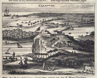 | Keywords: AMH-6987-KB Bird's eye view of Caleture.jpg Artwork nl Vogelvlucht van Caleture nl Vogelvlucht van Caleture Caleture lag aan de monding van de Kalu-rivier Het fort was belangrijk voor de controle op de kaneelhandel en Bird's eye view of Caleture Caleture lay at the mouth of the Kalu River The fort was key in controlling the cinnamon trade Atlas of Mutual Heritage kb http //www atlasofmutualheritage nl/en/object/ id 6987 Source at the Atlas of Mutual Heritage en Subjects survey / view bird's-eye view / elevation elevation / bird's-eye view ship / vessel fortification building Person Asians Africans fauna nl Onderwerpen overzicht / aanzicht vogelvlucht / opstand opstand / vogelvlucht schip / vaartuig vesting gebouw Persoon Aziaten Afrikanen fauna en Post this image is related to a VOC trading post called http //www atlasofmutualheritage nl/en/post/ id 370 Kalutara Inscription Caleture nl circa 1672 Creator Johannes Janssonius Waasbergen nl Johannes Janssonius Waasbergen uitgever Anoniem / Anonymous graveur / etser en Johannes Janssonius Waasbergen publisher Anoniem / Anonymous engraver / etcher Institution Koninklijke Bibliotheek nl koperdruk op papier en copperplate printing on paper Size cm 13 17 accession number 189 A 6 deel II p 61 PD-Art-100 Dutch East India Company 1672 |