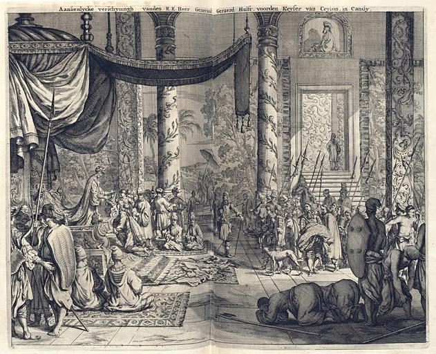 | Keywords: AMH-7003-KB General Hulst appears before the king of Candy.jpg Artwork nl Generaal Hulst verschijnt voor de koning van Candy nl Generaal Hulst verschijnt voor de keizer van Ceylon in Reygamwatte Aansienlycke verschyningh vanden E E Heer Generaal Geraerd Hulft voorden Keyser van Ceylon in Candy Hoewel het opschrift anders doet vermoeden vond deze ontmoeting plaats in Reygamwatte en General Hulst appears before the emperor of Ceylon in Reygamwatte Aansienlycke verschyningh vanden E E Heer Generaal Geraerd Hulft voorden Keyser van Ceylon in Candy Although the caption indicates otherwise this audience took place in Reygamwatte Atlas of Mutual Heritage kb http //www atlasofmutualheritage nl/en/object/ id 7003 Source at the Atlas of Mutual Heritage en Subjects survey / view interior meeting / visit Person Asians Africans European fauna nl Onderwerpen overzicht / aanzicht interieur ontmoeting / bezoek Persoon Aziaten Afrikanen Europeanen fauna en Post this image is related to a VOC trading post called http //www atlasofmutualheritage nl/en/post/ id 515 Kandy Inscription Aansienlycke verschyningh vanden E E Heer Generaal Geraerd Hulft voorden Keyser van Ceylon in Candy nl circa 1672 Creator Johannes Janssonius Waasbergen nl Anoniem / Anonymous graveur / etser Johannes Janssonius Waasbergen uitgever en Anoniem / Anonymous engraver / etcher Johannes Janssonius Waasbergen publisher Institution Koninklijke Bibliotheek nl koperdruk op papier en copperplate printing on paper Size cm 29 5 36 accession number 189 A 6 deel II voor p 107 PD-Art-100 Dutch East India Company 1672 Gerard Pietersz Hulft AMH-7003-KB General Hulft appears before the king of Candy.jpg Artwork nl Generaal Hulft verschijnt voor de koning van Candy nl Generaal Hulft verschijnt voor de keizer van Ceylon in Reygamwatte Aansienlycke verschyningh vanden E E Heer Generaal Geraerd Hulft voorden Keyser van Ceylon in Candy Hoewel het opschrift anders doet vermoeden vond deze ontmoeting plaats in Reygamwatte en General Hulft appears before the emperor of Ceylon in Reygamwatte Aansienlycke verschyningh vanden E E Heer Generaal Geraerd Hulft voorden Keyser van Ceylon in Candy Although the caption indicates otherwise this audience took place in Reygamwatte Atlas of Mutual Heritage kb http //www atlasofmutualheritage nl/en/object/ id 7003 Source at the Atlas of Mutual Heritage en Subjects survey / view interior meeting / visit Person Asians Africans European fauna nl Onderwerpen overzicht / aanzicht interieur ontmoeting / bezoek Persoon Aziaten Afrikanen Europeanen fauna en Post this image is related to a VOC trading post called http //www atlasofmutualheritage nl/en/post/ id 515 Kandy Inscription Aansienlycke verschyningh vanden E E Heer Generaal Geraerd Hulft voorden Keyser van Ceylon in Candy nl circa 1672 Creator Johannes Janssonius Waasbergen nl Anoniem / Anonymous graveur / etser Johannes Janssonius Waasbergen uitgever en Anoniem / Anonymous engraver / etcher Johannes Janssonius Waasbergen publisher Institution Koninklijke Bibliotheek nl koperdruk op papier en copperplate printing on paper Size cm 29 5 36 accession number 189 A 6 deel II voor p 107 PD-Art-100 Dutch East India Company 1672 Gerard Pietersz Hulft Johannes Janssonius Waasbergen |