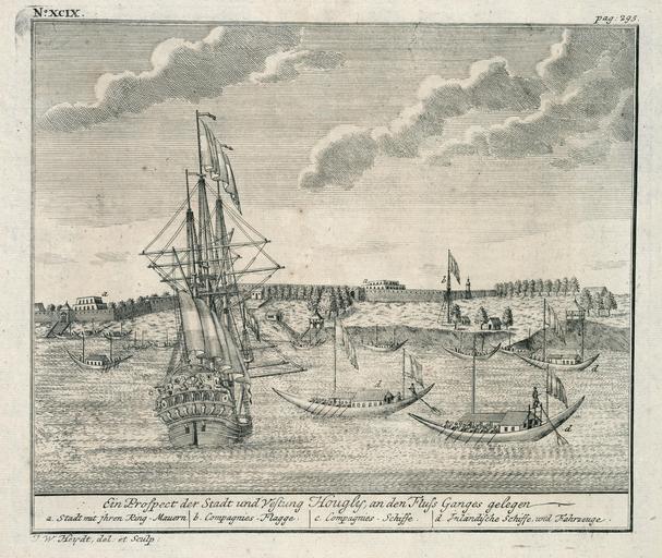 | Keywords: AMH-7106-KB View of Hougly.jpg Artwork nl Gezicht op Hougly nl Gezicht op Hougly Ein Prospect der Stadt und Vestung Hougly an den Fluss Ganges gelegen Linksboven No XCIX Rechtsboven pag 295 Legenda a Stadt mit ihren Ring-Mauern / b Compagnies-Flagge / c Compagnies-Schiffe / d Inländische Schiffe und Fahrzeuge en View of Hougly Ein Prospect der Stadt und Vestung Hougly an den Fluss Ganges gelegen Top left No XCIX Top right pag 295 Key a Stadt mit ihren Ring-Mauern / b Compagnies-Flagge / c Compagnies-Schiffe / d Inländische Schiffe und Fahrzeuge Atlas of Mutual Heritage kb http //www atlasofmutualheritage nl/en/object/ id 7106 Source at the Atlas of Mutual Heritage en Subjects survey / view ship / vessel fortification house building anchorage / pier / harbour Person nl Onderwerpen overzicht / aanzicht schip / vaartuig vesting huis / woonhuis gebouw rede / haven / pier Persoon en Post this image is related to a VOC trading post called http //www atlasofmutualheritage nl/en/post/ id 492 Hougly Inscription Ein Prospect der Stadt und Vestung Hougly an den Fluss Ganges gelegen author J W Heydt del et Sculp nl between 1735 1744 Creator Johann Carl Tetschner Creator Johann Wolfgang Heydt nl Johann Carl Tetschner uitgever Johann Wolfgang Heydt tekenaar en graveur en Johann Carl Tetschner publisher Johann Wolfgang Heydt draughtsman and engraver Institution Koninklijke Bibliotheek nl koperdruk op papier en copperplate printing on paper Size cm 24 5 29 accession number 2102 A 7 p 295 PD-Art-100 Dutch East India Company 1730s |