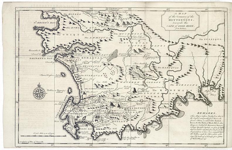 Keywords: AMH-7902-KB Map of the South African coast, from the bay of St. Helena to Mossel Bay.jpg Artwork nl Kaart van de Zuid-Afrikaanse kust van St Helenabaai tot Mosselbaai nl Kaart van de Zuid-Afrikaanse kust van St Helenabaai tot Mosselbaai A Map of the Country of the Hottentots towards the Cape of Good Hope Linksonder No 106 Rechtsonder is de plaatnummering weggevallen en Map of the South African coast from the bay of St Helena to Mossel Bay A Map of the Country of the Hottentots towards the Cape of Good Hope Bottom left No 106 Bottom right the plate numbering has been ommitted Atlas of Mutual Heritage kb http //www atlasofmutualheritage nl/en/object/ id 7902 Source at the Atlas of Mutual Heritage en Subjects chart / map / plan compass / dial banderole / cartouche / ornamentation nl Onderwerpen plattegrond / kaart kompas / windroos banderol / cartouche / versiering en Post this image is related to a VOC trading post called http //www atlasofmutualheritage nl/en/post/ id 320 Cape Town Inscription A Map of the Country of the Hottentots towards the Cape of Good Hope author G Child Sculp nl 1745 Creator G Child nl Anoniem / Anonymous landmeter / kaartenmaker Anoniem / Anonymous uitgever G Child graveur / etser en Anoniem / Anonymous land surveyor / mapmaker Anoniem / Anonymous publisher G Child engraver / etcher Institution Koninklijke Bibliotheek nl gravure op papier en engraving on paper Size cm 26 40 5 accession number 3032 B 12 na p 323 PD-Art-100 Maps of the Dutch East India Company - South Africa 1745 |