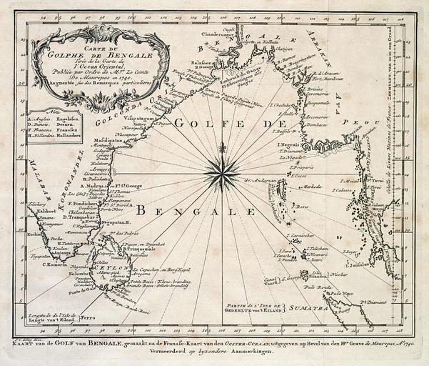 Keywords: AMH-7927-KB Map of the Gulf of Bengal.jpg Artwork nl Kaart van de Golf van Bengalen nl Kaart van de Golf van Bengalen Kaart van de Golf van Bengale Carte du Golphe de Bengale Links staan de op de kaart gebruikte afkortingen verklaard en Map of the Gulf of Bengal Kaart van de Golf van Bengale Carte du Golphe de Bengale To the left on the chart the abbreviations used are explained Atlas of Mutual Heritage kb http //www atlasofmutualheritage nl/en/object/ id 7927 Source at the Atlas of Mutual Heritage en Subjects chart / map / plan key compass / dial banderole / cartouche / ornamentation nl Onderwerpen plattegrond / kaart legenda kompas / windroos banderol / cartouche / versiering Inscription Kaart van de Golf van Bengale author J v Schley direx nl 1747 Creator Pierre d' Hondt Creator Jacobus van der Schley Creator Maurepas nl Pierre d' Hondt uitgever Jacobus van der Schley direxit Maurepas gewerkt naar en Pierre d' Hondt publisher Jacobus van der Schley direxit Maurepas copied after Institution Koninklijke Bibliotheek nl gravure op papier en engraving on paper Size cm 17 20 accession number 693 C 6 dl II na p 300 PD-Art-100 Old maps of the Dutch East India Company Maps of the Dutch East India Company - Sri Lanka Maps of the Dutch East India Company - Burma Maps of the Dutch East India Company - Bangladesh Maps of the Dutch East India Company - India 1747 |