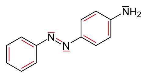 Keywords: Aminoazobenzol 1.svg Struktur von Aminoazobenzol konjugiertes Pi-Elektronensystem farblich hervorgehoben Structure of conjugated system of pi-bonds marked red own 2007-03-31 NEUROtiker Own work all rights released Public domain Azo dyes