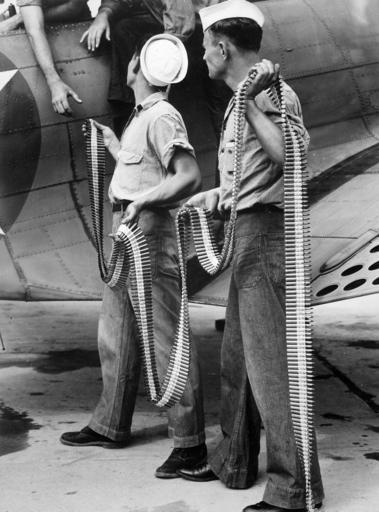 MAKE A MEME View Large Image Ammo 30cal belt 1942.jpg U S Navy ordnancemen loading belted cartridges into a Douglas SBD-3 Dauntless at Naval Air Station in Norfolk Virginia USA in 1942 520918 ca 1942-09 U S Navy photo 80-G-472528 File Ordnancemen loading belted ...