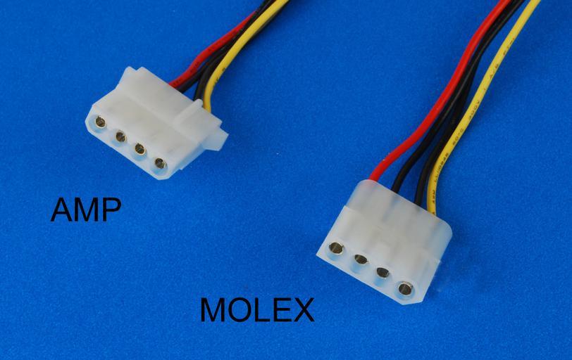MAKE A MEME View Large Image Amp and Molex Connectors.jpg en AMP Mate-N-Lok and Molex Standard 093 Pin and Socket power connectors The AMP connector has two chamfered corners on the lower edge while the Molex has a single chamfered edge on the left Photo by Michael ...