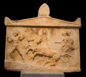 | Keywords: Amphiglyphon votif NAMA 1783 Athens Greece.jpg  en Votive amphiglyphon Pentelic marble Found in Neo Phaleron Attica This face depicts the abduction of the nymph Basile from Hades by the hero Echelos Hermes holding a whiplash in his right hand drives the chariot that transports the two figures Hermes Echelos and Basile are names inscribed on the epistyle This was dedicated by Kephisodotos son of Demogenes ca 410 BCE N°1783 fr Amphiglyphon votif Marbre Pentélique Trouvé à Neo Phalère Attique Cette face représente l'enlèvement de la nymphe Basile par le héros Echelos hors des Enfers Hermes tenant un fouet dans sa main droite conduit le char qui transporte les deux personnes Hermes Echelos et Basile sont les noms inscrits sur l'épistyle Monument consacré par Céphisodote fils de Demogenes institution National Archaeological Museum of Athens N°1783 2015-05-20 16 02 21 own Jebulon other versions cc-zero Uploaded with UploadWizard Ancient Greek votive reliefs in the National Archaeological Museum of Athens Reliefs of nymphs Reliefs of Hermes 410s BC reliefs in Athens Pentelic marble sculptures National Archaeological Museum of Athens - Room 17 National Archaeological Museum of Athens 1783 Black background Quadriga Reliefs of horses Quality images by Jebulon QualityImage |
