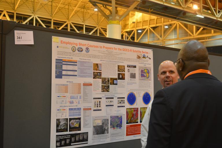 | Keywords: goes-r goesr user readiness userreadiness conferences conferences and events conferencesandevents events ams2016 noaa nesdis noaa satellites noaasatellites noaa satellite and information service noaasatelliteandinformationservice Mat Gunshor of CIMSS explains "Employing Short Courses to Prepare for the GOES-R Satellite Series." The #AMS2016 Short Course "GOES-R and JPSS Preview for Users" was held January 10, prior to the start of the conference. This course introduced users to the new capabilities made possible by NOAA’s next-generation weather satellite constellation. Through a mix of presentations and hands-on exercises, the course made users aware of GOES-R and JPSS capabilities, how they can improve their services to customers, and how these satellites can save lives and property. Presentations from the course can be found at go.usa.gov/cndKh Original photo source: www.goes-r.gov/multimedia/events.html Mat Gunshor of CIMSS explains "Employing Short Courses to Prepare for the GOES-R Satellite Series." The #AMS2016 Short Course "GOES-R and JPSS Preview for Users" was held January 10, prior to the start of the conference. This course introduced users to the new capabilities made possible by NOAA’s next-generation weather satellite constellation. Through a mix of presentations and hands-on exercises, the course made users aware of GOES-R and JPSS capabilities, how they can improve their services to customers, and how these satellites can save lives and property. Presentations from the course can be found at go.usa.gov/cndKh Original photo source: www.goes-r.gov/multimedia/events.html |