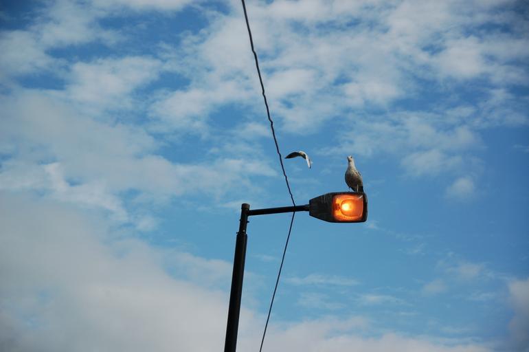 Keywords: amsterdam seagull bird streetlamp sky clouds light