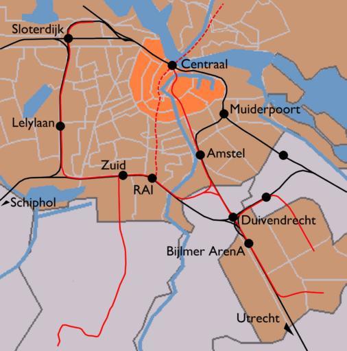 | Keywords: Amsterdam train map.png Map of Amsterdam's train stations Greyish orange background denotes the municipality of Amsterdam bright orange is the Amsterdam-Centrum district Black lines are railways and red lines are metro lines Dashed red line is a metro line under construction to be opened 2013 Black dots are the train stations Map of Amsterdam¤ 2007-12-03 Image modified by me taken from Wikipedia Commons Image Outline map Amsterdam metro 2 PNG which uses data from and copyrighted by the Dutch Centraal Bureau voor de Statistiek which allows anyone to use it for any purpose provided that the copyright holder is properly attributed Redistribution derivative work commercial use and all other use is permitted The map on Wikipedia was made by user Michiel1972 who placed his contribution in the public domain I am doing the same for my modifications http //www cbs nl/ CBS Michiel1972 me http //wts wikivoyage-old org/wiki/User 3A 28WT-shared 29_Mtcv WT-shared Mtcv attribution required; PD This image is in part or entirely based on geographical data from Statistics Netherlands Centraal Bureau voor de Statistiek Digital geometry files in ESRI format can be downloaded from their website 1 In particular boundary data of statistical districts is based on either the Wijk- en buurtkaart 2005 or the Wijk- en buurtkaart 2003 CBS/TOPgrenzen Data on localities bevolkingskernen are from the publication Bevolkingskernen in Nederland 2001 Conditions of use in Dutch Bij visualisering van gegevens met behulp van het digitale bestand Wijk- en buurtkaart 2005 dient te worden vermeld Bron © 2006 Centraal Bureau voor de Statistiek / Topografische Dienst Kadaster Bij visualisering van gegevens met behulp van het digitale bestand CBS/TOPgrenzen dient te worden vermeld Grenzen ondergrond © 2003 Centraal Bureau voor de Statistiek/Topografische Dienst Kadaster Bij visualisering van gegevens met behulp van het digitale bestand Bevolkingskernen 2001 dient te worden vermeld Bron © 2005 Centraal Bureau voor de Statistiek <small>Unless otherwise specified data on waterways and lakes are from the public domain Digital Chart of the World </small> User at wikivoyage old WT-shared Mtcv wts Original upload log wts page wts wikivoyage-old Amsterdam_train_map png 2007-12-03 14 03 http //wts wikivoyage-old org/wiki/user 3A 28WT-shared 29_Mtcv WT-shared Mtcv 2116×2142 397547 bytes <nowiki> Map of Amsterdam's train stations Image modified by me taken from Wikipedia Commons http //commons wi Import from wikitravel org/shared </nowiki> Public transport maps of Amsterdam |