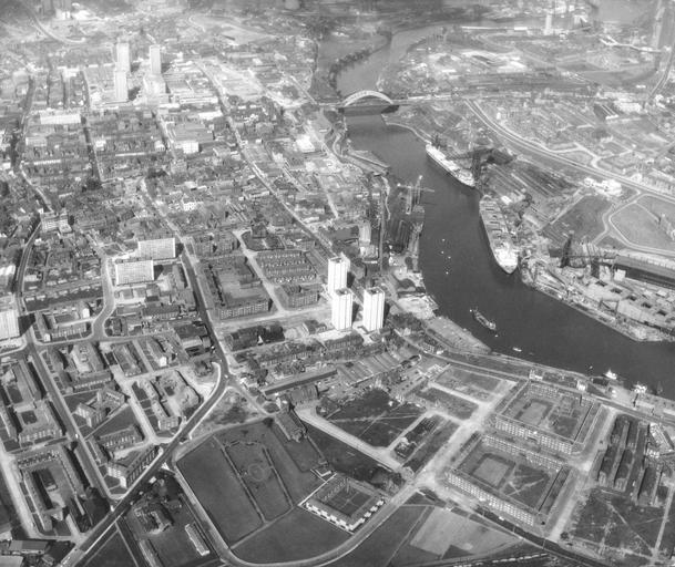 | Keywords: aerial view aerialview blackandwhite monochrome black and white Reference: DT.TUR-7-15-79-K This photograph has been taken from the Turners Collection at Tyne & Wear Archives. Turners were a commercial photographic company based at Pink Lane, in Newcastle upon Tyne. These Aerial Photographs of Sunderland were taken in 1969. Inspired by the upcoming Grayson Perry exhibition 'The Vanity in small differences' Tyne & Wear Archives have created this set in reaction to some of the themes surrounding Sunderland and its social make up that have been explored by Grayson Perry in his six large scale tapestries. This set features both Social and Landscape Photography of a nostalgic Sunderland; these consist of both Aerial views of the physical make up of Sunderland's landscape, mixed with social portraits of the working community and industrial scenes traditionally associated with Sunderland's Heritage. Both are relevant to Grayson Perry's upcoming collection of Tapestries exploring the story of class mobility and the influence social class has on our aesthetic taste. When recently interviewed on the subject Perry states "When I asked club singer Sean Foster-Conley what I should feature in my tapestries to show working-class taste, he said “the mines and shipyards”. “But they no longer exist,” I replied. In a very important way, however, he was right. The heavy industries that shaped the north of England also shaped the emotional lives of the generations of people who lived there. Winding towers and cranes can be torn down in a day, but the bonds, formed through shared hardship working under them, live on." These images of a community driven by industry, mixed with Aerial Views of the physical make up of Sunderland during this time reflect on Perry's view of the eternal relevance that Sunderland's social and industrial past has on its present community. More information on 'The Vanity of Small Differences' can be found here. (Copyright) We're happy for you to share these digital images within the spirit of The Commons. Please cite 'Tyne & Wear Archives & Museums' when reusing. Certain restrictions on high quality reproductions and commercial use of the original physical version apply though; if you're unsure please email archives@twmuseums.org.uk Reference: DT.TUR-7-15-79-K This photograph has been taken from the Turners Collection at Tyne & Wear Archives. Turners were a commercial photographic company based at Pink Lane, in Newcastle upon Tyne. These Aerial Photographs of Sunderland were taken in 1969. Inspired by the upcoming Grayson Perry exhibition 'The Vanity in small differences' Tyne & Wear Archives have created this set in reaction to some of the themes surrounding Sunderland and its social make up that have been explored by Grayson Perry in his six large scale tapestries. This set features both Social and Landscape Photography of a nostalgic Sunderland; these consist of both Aerial views of the physical make up of Sunderland's landscape, mixed with social portraits of the working community and industrial scenes traditionally associated with Sunderland's Heritage. Both are relevant to Grayson Perry's upcoming collection of Tapestries exploring the story of class mobility and the influence social class has on our aesthetic taste. When recently interviewed on the subject Perry states "When I asked club singer Sean Foster-Conley what I should feature in my tapestries to show working-class taste, he said “the mines and shipyards”. “But they no longer exist,” I replied. In a very important way, however, he was right. The heavy industries that shaped the north of England also shaped the emotional lives of the generations of people who lived there. Winding towers and cranes can be torn down in a day, but the bonds, formed through shared hardship working under them, live on." These images of a community driven by industry, mixed with Aerial Views of the physical make up of Sunderland during this time reflect on Perry's view of the eternal relevance that Sunderland's social and industrial past has on its present community. More information on 'The Vanity of Small Differences' can be found here. (Copyright) We're happy for you to share these digital images within the spirit of The Commons. Please cite 'Tyne & Wear Archives & Museums' when reusing. Certain restrictions on high quality reproductions and commercial use of the original physical version apply though; if you're unsure please email archives@twmuseums.org.uk |
