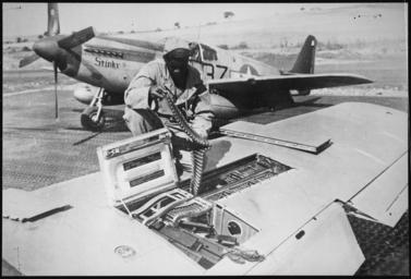 Keywords: "An armorer of the 15th U.S. Air Force checks ammunition belts of the .50 caliber machine guns in the wings of a P-51... - NARA - 535764.tif Local identifier 208-MO-18H-32984 Office for Emergency Management Office of War Information Overseas Operations Branch New York Office News and Features Bureau 12/17/1942 - 09/15/1945 Still Picture Records Section Special Media Archives Services Division NWCS-S National Archives at College Park 8601 Adelphi Road College Park MD 20740-6001 ca 09/1944 Record group Record Group 208 Records of the Office of War Information 1926 - 1951 Record group ARC 535 Photographs of American Military Operations compiled 1942 - 1945 Series ARC 535762 Variant control numbers NAIL Control Number NWDNS-208-MO-18H-32984<br /> Select List Identifier AFRO/AM LIST 55 General notes Scope and content File unit File unit ARC yes NARA-cooperation PD-USGov P-51C Mustang Tuskegee Airmen Browning AN/M2 NARA TIF images with categorized JPGs |