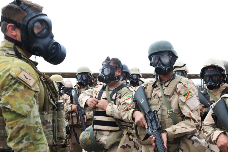 | Keywords: An Australian soldier with Task Group Taji inspects Iraqi soldiers during CRBN training.jpg en An Australian soldier with Task Group Taji inspects Iraqi soldiers assigned to 3rd Battalion 36th Brigade 9th Mechanized Division for proper wear of their protective gear over their chemical biological radiological and nuclear masks during CBRN reinforcement training at Camp Taji Iraq April 13 2016 Trainers conducted this exercise to gauge the Iraqi soldiers ™ CBRN capabilities The building partner capacity mission aims to increase the military capacity of local forces fighting the Islamic State of Iraq and the Levant U S Army photo by Sgt Kalie Jones/Released 2016-04-12 20 00 00 https //www dvidshub net/image/2568091/task-group-taji-trains-soldiers-with-iraqs-9th-div V0PRc_l96Uk U S Army photo by Sgt Kalie Jones other versions PD-USGov Soldiers of Australia Australian contribution to the military intervention against ISIL Soldiers of Iraq post-2003 Males with M16 rifle Camp Taji Military training in Iraq |
