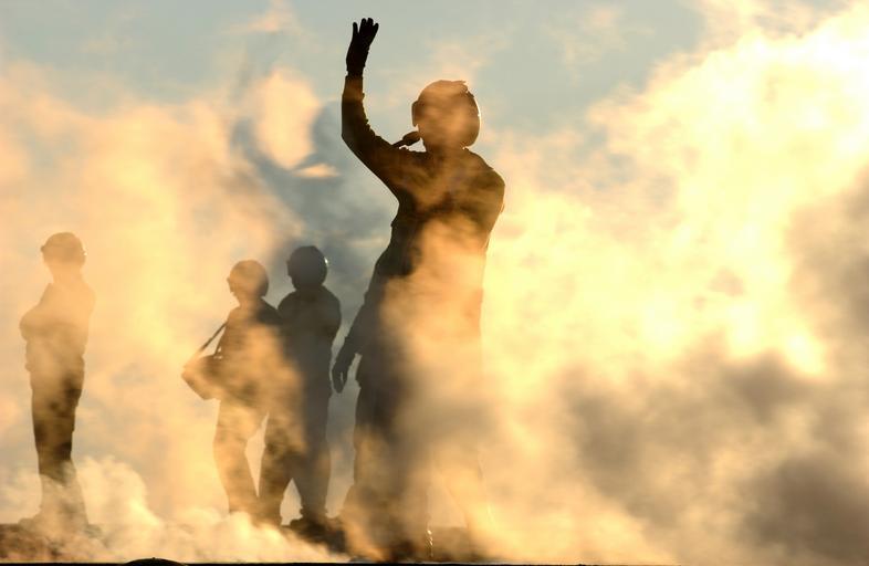Keywords: US Navy 030929-N-0696M-203 An Aviation Boatswain^rsquo,s Mate signals for another aircraft to taxi into position, as he is surrounded by the steam from one of four catapults on the flight deck aboard USS Ronald Reagan (CVN 76).jpg en Aboard USS Ronald Reagan CVN 76 Sept 29 2003 -- An Aviation Boatswain s Mate signals for another aircraft to taxi into position as he is surrounded by the steam from one of four catapults on the flight deck aboard USS Ronald Reagan CVN 76 The nuclear-powered aircraft carrier is underway in the Atlantic Ocean to provide a carrier qualification platform for Carrier Air Wing Seventeen CVW-17 U S Navy photo by Photographer s Mate 2nd Class Chad McNeeley RELEASED 2003-09-29 030929-N-0696M-203 Navy http //www navy mil/view_image asp id 10192 U S Navy photo by Photographer s Mate 2nd Class Chad McNeeley PD-USGov-Military-Navy Aircraft taxiing on USS Ronald Reagan CVN-76 |