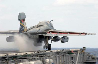 | Keywords: US Navy 021109-N-1810F-024 E-A6B Prowler launches from USS Kitty Hawk catapult one.jpg en At sea aboard USS Kitty Hawk CV 63 Nov 9 2002 -- An EA-6B Prowler assigned to the Gauntlets of Tactical Electronic Warfare Squadron One Three Six VAQ-136 launches from one of four steam driven catapults on the ship s flight deck Kitty Hawk is the Navy s only permanently forward-deployed aircraft carrier and operates out of Yokosuka Japan U S Navy photo by Photographer s Mate 3rd Class Todd Frantom RELEASED 2002-11-09 021109-N-1810F-024 Navy http //www navy mil/view_image asp id 3317 U S Navy photo by Photographer s Mate 3rd Class Todd Frantom PD-USGov-Military-Navy Aboard USS Kitty Hawk CV-63 Grumman EA-6 Prowler Pictures by Mass Communication Specialist Todd Frantom |