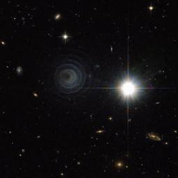 Keywords: iras 23166+1655 iras231661655 ll pegasi llpegasi outdoor black background This remarkable picture from the Advanced Camera for Surveys on the NASA/ESA Hubble Space Telescope shows one of the most perfect geometrical forms created in space. It captures the formation of an unusual pre-planetary nebula, known as IRAS 23166+1655, around the star LL Pegasi (also known as AFGL 3068) in the constellation of Pegasus (the Winged Horse). The striking picture shows what appears to be a thin spiral pattern of astonishingly regularity winding around the star, which is itself hidden behind thick dust. The spiral pattern suggests a regular periodic origin for the nebula’s shape. The material forming the spiral is moving outwards a speed of about 50 000 km/hour and, by combining this speed with the distance between layers, astronomers calculate that the shells are each separated by about 800 years.The spiral is thought to arise because LL Pegasi is a binary system, with the star that is losing material and a companion star orbiting each other. The spacing between layers in the spiral is expected to directly reflect the orbital period of the binary, which is indeed estimated to be also about 800 years.The creation and shaping of planetary nebulae is an exciting area of stellar evolution. Stars with masses from about half that of the Sun up to about eight times that of the Sun do not explode as supernovae at the ends of their lives. Instead a more regal end awaits them as their outer layers of gas are shed and drift into space, creating striking and intricate structures that to Earth-bound observers often look like dramatic watercolour paintings. IRAS 23166+1655 is just starting this process and the central star has yet to emerge from the cocoon of enveloping dust.This picture was created from images from the Wide Field Channel of the Advanced Camera for Surveys on Hubble. Images through a yellow filter (F606W, coloured blue) were combined with images through a near-infra red filter (F804W, coloured red). The exposure times were 11 minutes and 22 minutes respectively and the field of view spans about 80 arcseconds.Links Paper discussing the intriguing AFGL 3068 (PDF format) This remarkable picture from the Advanced Camera for Surveys on the NASA/ESA Hubble Space Telescope shows one of the most perfect geometrical forms created in space. It captures the formation of an unusual pre-planetary nebula, known as IRAS 23166+1655, around the star LL Pegasi (also known as AFGL 3068) in the constellation of Pegasus (the Winged Horse). The striking picture shows what appears to be a thin spiral pattern of astonishingly regularity winding around the star, which is itself hidden behind thick dust. The spiral pattern suggests a regular periodic origin for the nebula’s shape. The material forming the spiral is moving outwards a speed of about 50 000 km/hour and, by combining this speed with the distance between layers, astronomers calculate that the shells are each separated by about 800 years.The spiral is thought to arise because LL Pegasi is a binary system, with the star that is losing material and a companion star orbiting each other. The spacing between layers in the spiral is expected to directly reflect the orbital period of the binary, which is indeed estimated to be also about 800 years.The creation and shaping of planetary nebulae is an exciting area of stellar evolution. Stars with masses from about half that of the Sun up to about eight times that of the Sun do not explode as supernovae at the ends of their lives. Instead a more regal end awaits them as their outer layers of gas are shed and drift into space, creating striking and intricate structures that to Earth-bound observers often look like dramatic watercolour paintings. IRAS 23166+1655 is just starting this process and the central star has yet to emerge from the cocoon of enveloping dust.This picture was created from images from the Wide Field Channel of the Advanced Camera for Surveys on Hubble. Images through a yellow filter (F606W, coloured blue) were combined with images through a near-infra red filter (F804W, coloured red). The exposure times were 11 minutes and 22 minutes respectively and the field of view spans about 80 arcseconds.Links Paper discussing the intriguing AFGL 3068 (PDF format)
