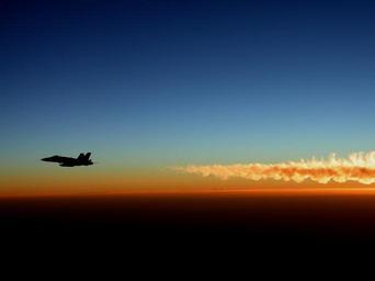 | Keywords: US Navy 030415-N-0000X-002 An F-A-18 Hornet from the.jpg en The Arabian Gulf Apr 15 2003 -- An F/A-18 Hornet from the Mighty Shrikes of Strike Fighter Squadron Ninety Four VFA-94 leaves a contrail while conducting missions over Iraq Contrails form when hot humid air from jet exhaust mixes with environmental air of low vapor pressure and low temperature The mixing is a result of turbulence generated by the engine exhaust The Mighty Strikes are deployed with Carrier Air Wing Eleven CVW-11 aboard USS Nimitz CVN 68 conducting missions in support of Operation Iraqi Freedom Operation Iraqi Freedom is the multi-national coalition effort to liberate the Iraqi people eliminate Iraq's weapons of mass destruction and end the regime of Saddam Hussein U S Navy photo RELEASED 2003-04-15 030415-N-0000X-002 Navy http //www navy mil/view_image asp id 7776 U S Navy photo PD-USGov-Military-Navy Contrails photographed from the air Aerial photographs of military aircraft in flight F/A-18 Hornet in flight Strike Fighter Squadron 94 United States Navy Flow visualization |