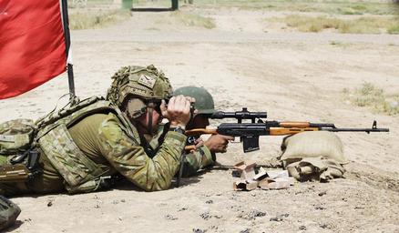 MAKE A MEME View Large Image Iraqi soldier fires a sniper rifle as an Australian soldier attached to Task Group Taji spots a target for him in July 2016.jpg en An Iraqi soldier fires a Dragunov sniper rifle as an Australian soldier attached to Task Group Taji spots a ...