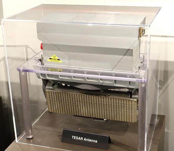 Keywords: AN-ZPQ-1, TESAR radar antenna, Tactical Endurance Synthetic Aperature Radar, Northrup Grumman, 1996 - National Electronics Museum - DSC00422.JPG en Exhibit in the National Electronics Museum 1745 West Nursery Road Linthicum Maryland USA All items in this museum are unclassified The museum permitted photography without restriction 2014-07-21 15 21 44 own Daderot cc-zero Phased array radars in the National Electronics Museum Uploaded with UploadWizard AN/ZPQ-1 Active electronically scanned arrays