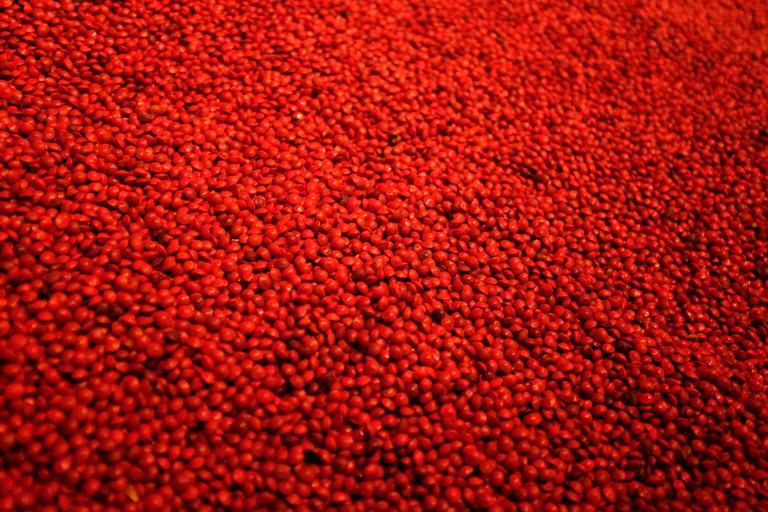 Keywords: anahata saga seeds kumari nahappan red south east asia singapore biennale 2013 singapore art museum singaporeartmuseum exhibition art installation public domain publicdomain texture knitting Comprising more than 2,000 kg of saga seeds collected from across Southeast Asia, Anahata is a site-specific installation located in the heart of the Singapore Art Museum. In Hindu cosmology, the word refers to the fourth and 'heart' chakra, meaning "unstruck" or "unhurt". The idea of change is expressed here not as an active force or physical manifestation, but rather as sheer potential energy as embodied in the seed, which holds the life-force of an entire tree in its tiny kernel. The work recalls the history of the site as a former Catholic boys' school, a place where knowledge and learning were planted. Pulsing with the energy of thousands of seeds, Anahata intimates that the greatest power is that of pure possibility. Comprising more than 2,000 kg of saga seeds collected from across Southeast Asia, Anahata is a site-specific installation located in the heart of the Singapore Art Museum. In Hindu cosmology, the word refers to the fourth and 'heart' chakra, meaning "unstruck" or "unhurt". The idea of change is expressed here not as an active force or physical manifestation, but rather as sheer potential energy as embodied in the seed, which holds the life-force of an entire tree in its tiny kernel. The work recalls the history of the site as a former Catholic boys' school, a place where knowledge and learning were planted. Pulsing with the energy of thousands of seeds, Anahata intimates that the greatest power is that of pure possibility.