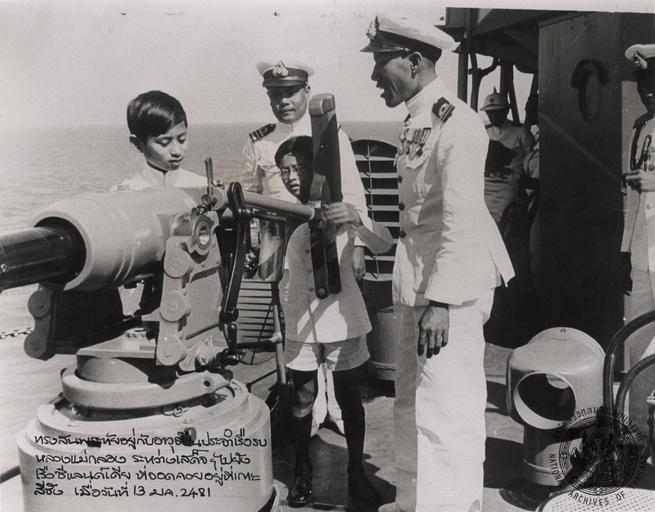 Keywords: Ananda Mahidol and Bhumibol Adulyadej 1939.01.13.jpg th พระบาทสม ด็จพระ จ้าอยู่หัวอานันทมหิดล และสม ด็จพระปรมินทรมหาภูมิพลอดุลย ดช ทรงสนพระทัยอยู่กับอาวุธปืนประจำ รือรบหลวงแม่กลอง ระหว่าง สด็จฯไปยัง รือซีแลนด์ ดีย ที่จอดอยู่ที่ กาะสีชัง มื่อวันที่ 13 มกราคม พ ศ 2482 1939-01-13 http //www finearts go th/nat/images/kingbhumibol/CFN01-P0017355-0000 jpg The National Archives of Thailand The National Archives of Thailand other versions Custom license marker 2016 10 20 PD-Thailand Photos of Ananda Mahidol Bhumibol Adulyadej in 1939 HTMS Maeklong