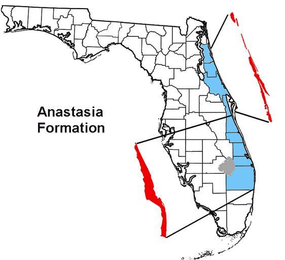 | Keywords: Anastasia Formation Florida.png en Depiction of Florida's Anastasia Formation an underlying marine sandstone coquina shelly marl rock deposited during the Pleistocne Map created using Florida Geologic Survey map own Noles1984 Geological maps of Florida |
