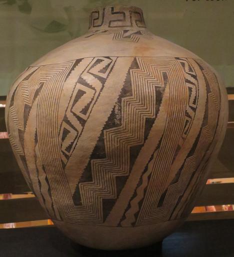 Keywords: Ancestral Pueblo, Red Mesa black on white storage jar, 870-1000 CE, Heard Museum.JPG en Ancestral Pueblo Red Mesa black on white storage jar 870-1000 CE Heard Museum own Wmpearl photo 2015 Ancestral Pueblo pottery in the Heard Museum Cc-zero |