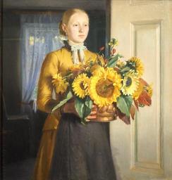 | Keywords: Ancher M.@Mädchen m Sonnenblumen.JPG Artwork Q20275891 Creator Michael Ancher Mädchen mit Sonnenblumen Pigen med solsikkerne A Girl with Sunflowers 1889 oil on canvas cm 111 4 105 3 9 5 Institution Statens Museum for Kunst Copenhagen København http //www smk dk/en/explore-the-art/search-smk/ /detail/KMS3820 http //cspic smk dk/globus/GLOBUS 202011/KMS3820 jpg image The artist painted another in 1893 shown by http //skagenskunstmuseer dk/en/works/girl-with-sunflowers/ http //skagenskunstmuseer dk/vaerker/pigen-med-solsikkerne/ Dansk uploader was Hajotthu at http //de wikipedia org de wikipedia Inv -Nr KSM 3820 Other versions PD-old-80 Paintings by Michael Ancher Sunflowers in paintings Paintings by Michael Ancher in Statens Museum for Kunst |
