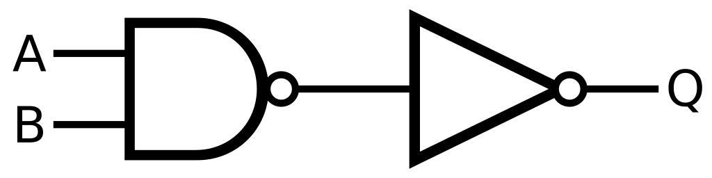 Keywords: AND from NAND and NOT.svg AND Gate constructed from NAND and NOT Gates Own drawing Inkscape 0 43 12/07/06 inductiveload PD Alternative logic gates AND gates NAND gate symbols NOT gate symbols