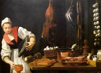 | Keywords: Andrea Commodi - Young Woman in the Kitchen - WGA05171.jpg  Artwork Creator Andrea Commodi firsthalf other date century 17 Oil on canvas Private collection accession number object history credit line WGA link 5171 http //www wga hu/art/c/commodi/kitchen jpg http //www wga hu/html/c/commodi/kitchen html PD-old-100 painting genre Italian 1601-1650 Andrea Commodi Young Woman in the Kitchen 17th-century paintings in unidentified private collections 17th-century oil on canvas paintings WGA form painting WGA type genre WGA School Italian WGA time period 1601-1650 Pouring in art People in kitchens in art 17th-century food drinks and cooking in painting 17th-century domestic activities in painting Paintings of women standing in kitchens 1601-1650 paintings in private collections |