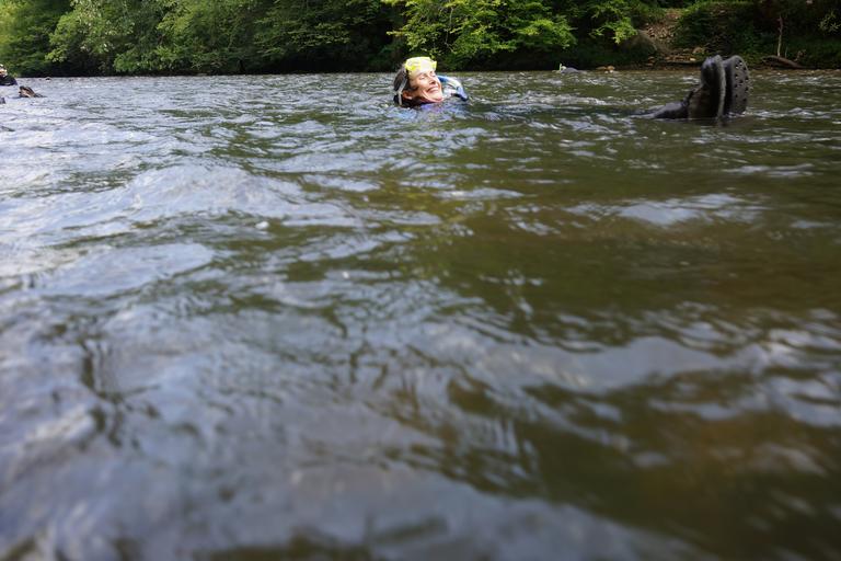 Keywords: u. s. fish and wildlife service usfishandwildlifeservice cherokee snorkel oconaluftee outdoor water landscape creek watercourse stream Aquatic biologists and stream conservationists who work in the Little Tennessee River basin recently came together on the Oconaluftee River, in Cherokee, North Carolina, to learn more about hosting public snorkeling events. Jim Herrig, of the Cherokee National Forest, started public snorkeling programs in the Conasauga River basin as a way to connect people with the incredible diversity of aquatic life in Southern Appalachian streams. This outing was an opportunity for Jim to pass his knowledge on to others, as snorkeling programs emerge across the area. Credit: Gary Peeples/USFWS Aquatic biologists and stream conservationists who work in the Little Tennessee River basin recently came together on the Oconaluftee River, in Cherokee, North Carolina, to learn more about hosting public snorkeling events. Jim Herrig, of the Cherokee National Forest, started public snorkeling programs in the Conasauga River basin as a way to connect people with the incredible diversity of aquatic life in Southern Appalachian streams. This outing was an opportunity for Jim to pass his knowledge on to others, as snorkeling programs emerge across the area. Credit: Gary Peeples/USFWS |