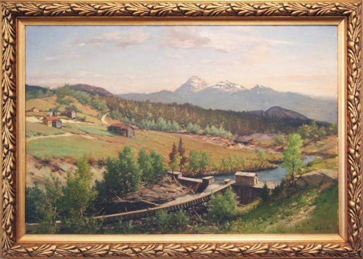 | Keywords: Andreas Edvard Disen, Fjellgård med tømmerdrift.jpg Artwork creator Andreas Edvard Disen unknown oil canvas cm object history credit line accession number Auction catalog Oslo Norway PD-old-auto 1923 Paintings by Andreas Edvard Disen Paintings with frames Landscape paintings Oil on canvas Dams in art |