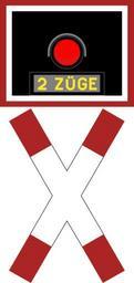 | Keywords: Andreaskreuz mit Blinklicht für unbeschrankten mehrgleisigen Bahnübergang - BO 1961.svg de Andreaskreuz mit Blinklicht für unbeschrankten mehrgleisigen Bahnübergang Das Blinklicht mit dem Leuchtschriftzug 2 Züge durfte nur an Wegen ohne einen allgemeinen Kraftwagenverkehr aufgestellt werden Kreuzten zwei Züge den Bahnübergang erschien die Leuchtschrift und der Wecker ertönte In dieser Form wurden die Zeichen am 1 Januar 1961 eingeführt Quelle Bundesgesetzblatt Teil II Nr 61 Bonn am 28 Dezember 1960 S 2421-2423 own Mediatus 2014-08-13 v Cc-zero PD-VzKat Diagrams of railway road signs of Germany 1961 set Diagrams of railway road signs of Germany 1971 set |