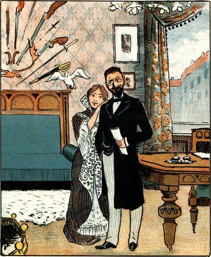 | Keywords: —AnerkendelseSagfoereren.jpg LargeImage en Recognition <br>The lawyer Rejoice little wife now you get the new hat that you have so long wished you - and a fur coat you also get <br>Lady Well dear Albert then you must also have had a great rogue acquitted da Anerkendelse<br>Sagføreren Glæd dig lille kone nu skal du få den nye Hat som du så længe har ønsket dig - og en pelskåbe skal du også få <br>Fruen Nå kære Albert så må du også ha'e fået en stor gavtyv frifunden Ravnen anonymes 1901-02-17 PD PD-Art Ravnen Caricatures of couples Fashion in 1901 1901 cartoons 1901 in Denmark Lawyers in art Weapons in art |