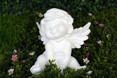Keywords: angel guardian angel wing satisfied smile happy joy satisfaction face laugh cheerful enjoy meadow flowers sit angel figure deco decoration angel wings angel face happiness sweet white faith harmony cute