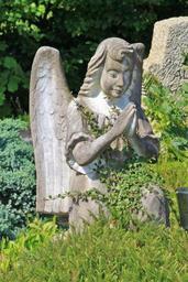 Keywords: angel pray cemetery sculpture fig statue tombstone angel figure mourning memorial faith consolation religion christianity wing hope symbol christian kneeling prayer still image tomb green plant climber stone sculptor
