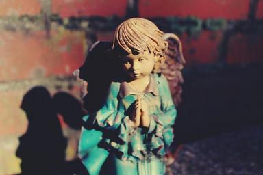 Keywords: angel statue fig wing cemetery woman angel face angel figure art sculpture faith religion pray rest prayer christian christianity god commemorate hands spiritual contemplative gold shadow sun wall