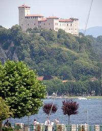 Keywords: Angera Rocca 24.JPG fr Forteresse d'Angera en italien Rocca di Angera juchée sur son éperon rocheux surplombant la localité italienne d'Angera dans la province de Varèse sur la rive orientale lombarde du lac Majeur Flancs occidental à gauche et méridional à droite du château Vue prise au téléobjectif depuis Arona sur la rive opposée piémontaise du lac Majeur à une distance d'env 2km à l'avant-plan quai du lac à Arona 2012-07-08 own Torsade de Pointes cc-zero Uploaded with UploadWizard Rocca di Angera |