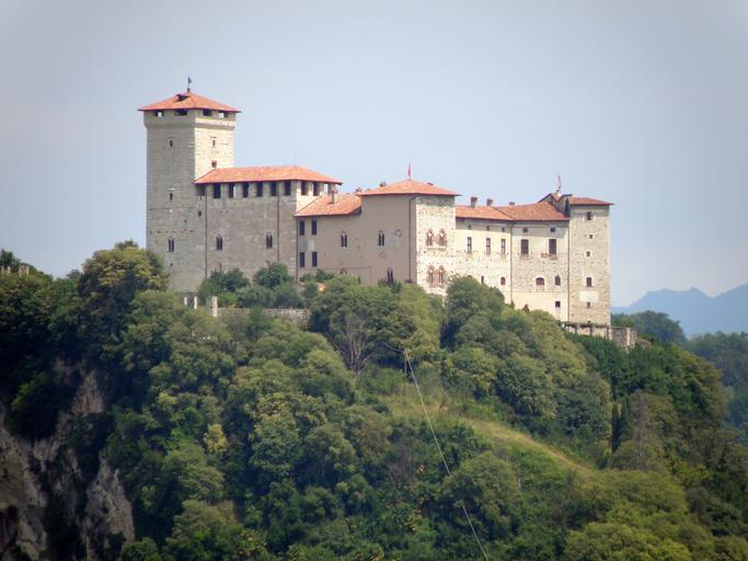 Keywords: Angera Rocca 25.JPG fr Forteresse d'Angera en italien Rocca di Angera juchée sur son éperon rocheux surplombant la localité italienne d'Angera dans la province de Varèse sur la rive orientale lombarde du lac Majeur Flancs occidental à gauche et méridional à droite du château Vue prise au téléobjectif depuis Arona sur la rive opposée piémontaise du lac Majeur à une distance d'env 2km 2012-07-08 own Torsade de Pointes cc-zero Uploaded with UploadWizard Rocca di Angera |