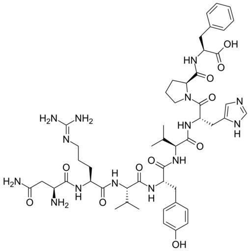 Keywords: Angiotensinamide.svg Skeletal formula of angiotensinamide Created using http //www acdlabs com/download/chemsk html ACD/ChemSketch 10 0 and Inkscape Own 2007-08-22 Fvasconcellos 01 28 23 August 2007 UTC Peptides