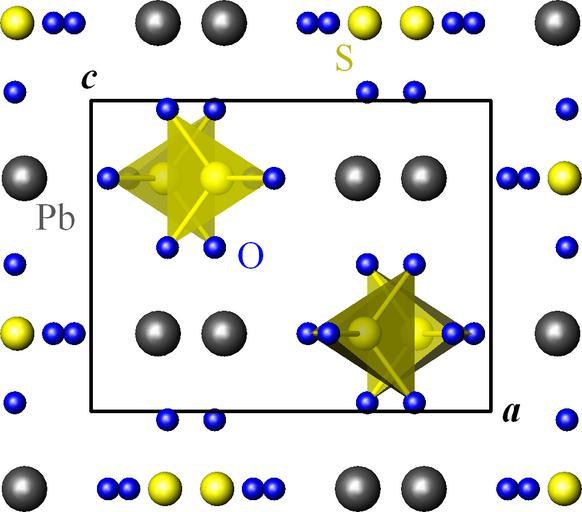 Keywords: Anglesite structure ac.png en Crystal structure of anglesite PbSO4 Pbnm projected onto the a c plane Gray lead atoms yellow sulfur blue oxygen Data source S D Jacobsen J R Smyth R J Swope R T Downs Rigid-body character of the SO4 groups in celestine anglesite and barite The Canadian Mineralogist 36 1998 p 1053-1060 own Perditax 2010-09-27 Anglesite Lead compounds Crystal structures of sulfates Crystal structures in space group number 62 |