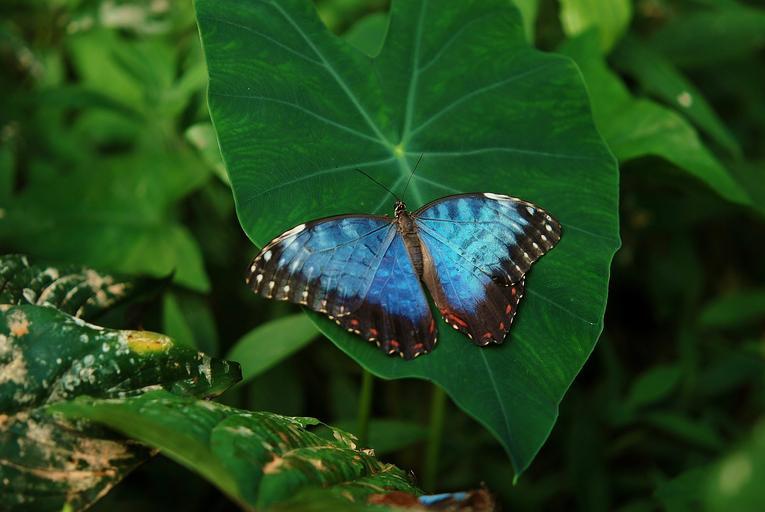 Keywords: animal beautiful blue butterfly colorful delicate detail exotic forest green insect leaf macro pretty tropical wildlife wing wings