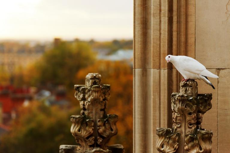 Keywords: animal bird curious dove feather pigeon street autumn roof sitting architecture