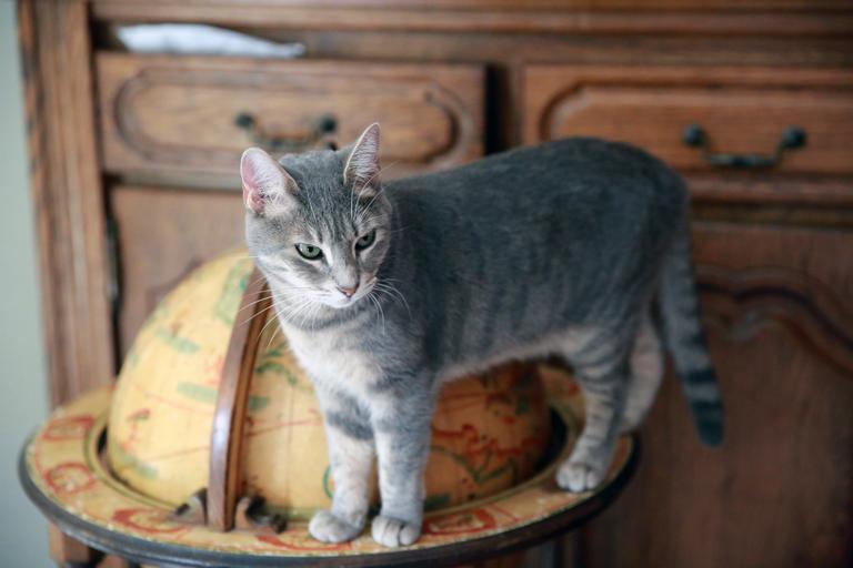 Keywords: animal fart pet domestic animal feline cat promontory perched tabby domestic cats eyes cat face european matou grey beige kitty grey cat familiar observation soft look