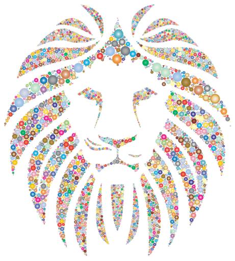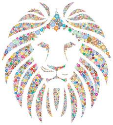 Keywords: animal lion big cat feline king of the jungle africa tribal geometric art colorful circles dots